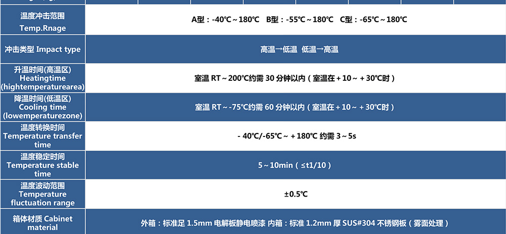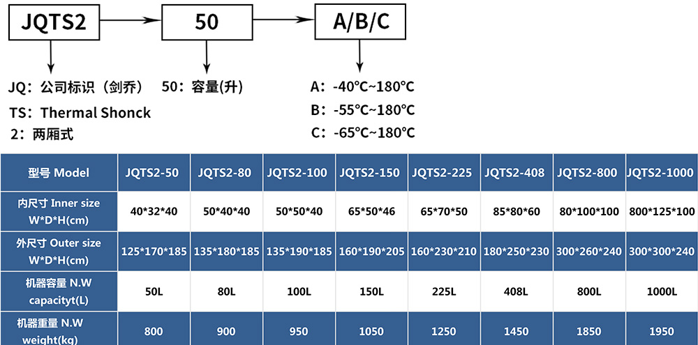 • 兩廂式冷熱沖擊試驗(yàn)箱型號(hào)命名及參數(shù)表