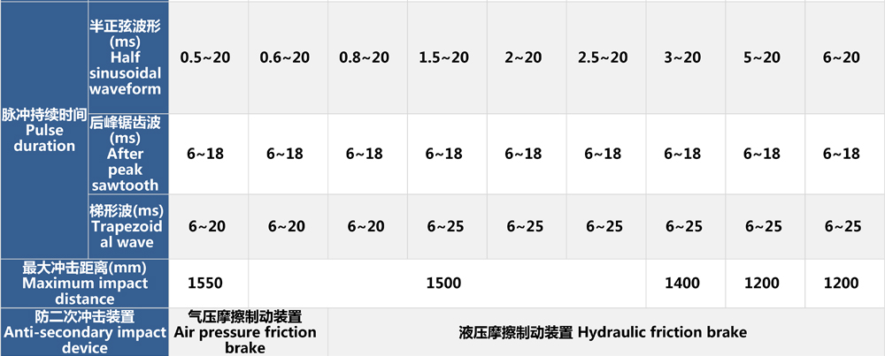 公司產(chǎn)品樣本中分別標(biāo)注出了各型號氣動(dòng)沖擊碰撞試驗(yàn)臺(tái)的空載和標(biāo)稱加載狀態(tài)下的速度變化量,用戶可根據(jù)自身試驗(yàn)指標(biāo)來選擇適合自身需求的沖擊臺(tái)。